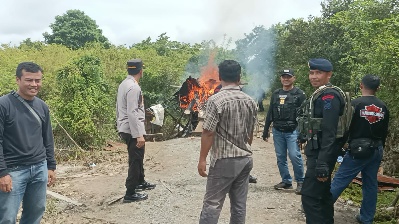 Pembongkaran sejumlah pos serta pembakaran bangunan pondok yang terbuat dari bahan kayu itu berlangsung pada Minggu (4/12/2022) siang.
