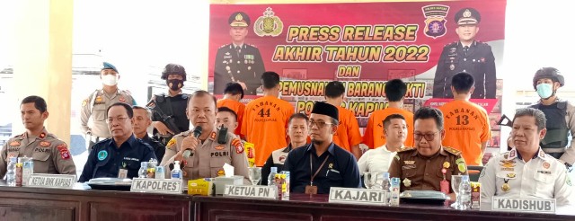 KUALA KAPUAS, kaltengtimes.co.id – Dari 276 kasus yang di tangani Polres Kapuas sepanjang 2022 kasus narkoba masih menduduki peringkat tertinggi dengan dengan jumlah 58 kasus dengan 62 orang tersangka pelaku dan delapan (8) diantaranya adalah perempuan. Dari 58 kasus tersebut satu (1) diantaranya hingga kini masih dalam proses.