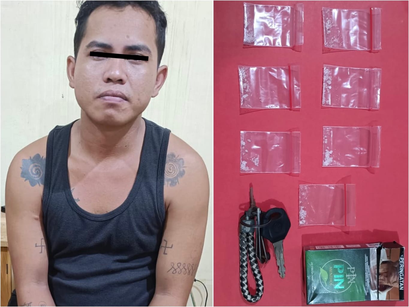 Selain mengamankan sabu-sabu petugas juga menemukan barang bukti lainnya berupa 1 buah kotak rokok warna hijau, 1 unit Handphone merk OPPO A3s warna ungu, serta 1 unit sepeda motor merk Yamaha Vixion warna hitam Nopol. KH 6797 TE.