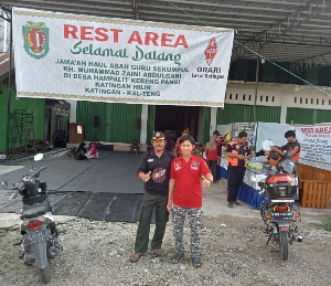 Salah satu posko Haul Guru Sekumpul, yang dibangun di oleh anggota Orari Kabupaten Katingan, di Kereng Pangi Desa Hampalit Kecamatan Katingan Hilir. (Ist)
