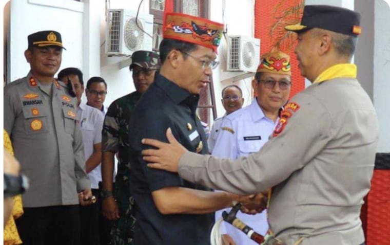 Bupati Murung Raya Perdie M. Yoseph saat menyambut Kunjungan Kerja Wakapolda Kalimantan Tengah Brigadir Jenderal Polisi M. Agung Budiono S.I.K M.,M.Si, Rabu (1/2). (Istimewa)