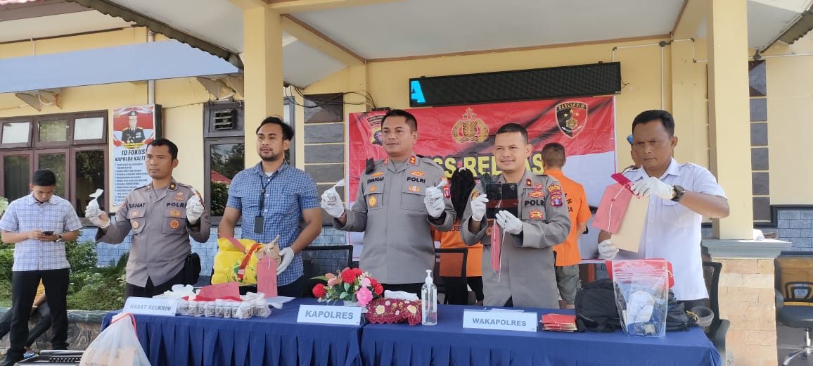 Irwansah saat menggelar pers rilis yang didampingi Wakapolres Kompol Zakkir, Kabag Ops Kompol Sahat, Kasat Reskrim AKP Deni Langie, SIK, Kasat Resnarkoba Iptu Heri Purwanto dan Kapolsek Murung Iptu Widodo, SE, Rabu (22/2).