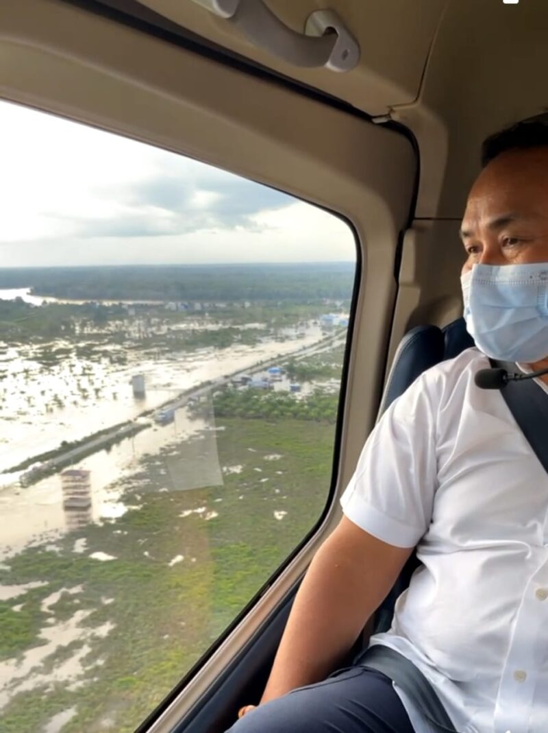 PALANGKA RAYA. Kaltengtimes.co.id – Setelah menerima laporan dari masyarakat yang menyampaikan bahwa di Kecamatan Kamipang, Kabupaten Katingan, saat ini sedikitnya ada 5 Desa yang tergenang banjir cukup parah, Gubernur Kalimantan Tengah, H.Sugianto Sabran bertindak cepat, yakni memantau banjir di Kecamatan Kamipang melalui udara menggunakan helikopter, Jum’at (17/9) sore. “Saya memastikan kondisi banjir di Kabupaten Katingan, karena mendapat laporan langsung dari masyarakat bahwa di Kecamatan Kamipang ada 5 Desa dan di Jalan Mendawai Kota Palangka Raya ada 2 Desa masih terendam banjir yang cukup tinggi, namun belum mendapatkan bantuan,’’ kata H. Sugianto Sabran dikutip melalui media sosial laman facebook Sugianto Sabran. Untuk itu Gubernur memastikan, bantuan penanganan masyarakat terdampak banjir di dua tempat tersebut akan didistribusikan sesegera mungkin. Gubernur berharap banjir yang melanda sebgaian besar wilayah Kalimantan Tengah segera berakhir. Untuk diketahui, dalam penanganan bencana banjir di Kalteng, Pemprov. Kalteng juga telah mendistribusikan bantuan sebelumnya ke daerah-daerah yang terdampak banjir di Kalteng. Banjir di Kalteng terjadi pada 11 Kabupaten dan 1 Kota yaitu Kabupaten Lamandau, Kotawaringin Barat, Sukamara, Seruyan, Kotawaringin Timur, Katingan, Gunung Mas, Pulang Pisau, Barito Utara, Barito Selatan, Murung Raya dan Palangka Raya. Banjir yang paling parah terjadi di Kabupaten Katingan dan Kabupaten Kotawaringin Timur. Bencana banjir lebih disebabkan terjadinya peningkatan intensitas curah hujan yang terjadi mulai 21 Agustus 2021 lalu. (red)