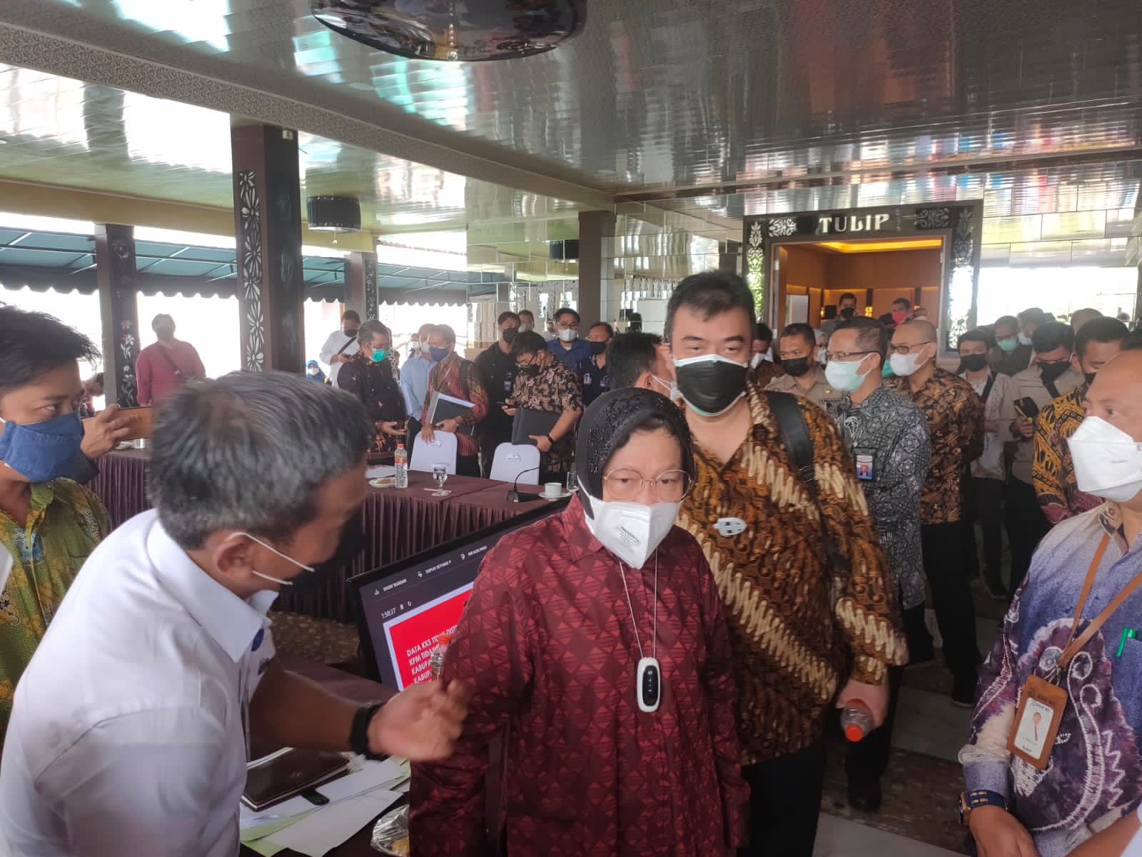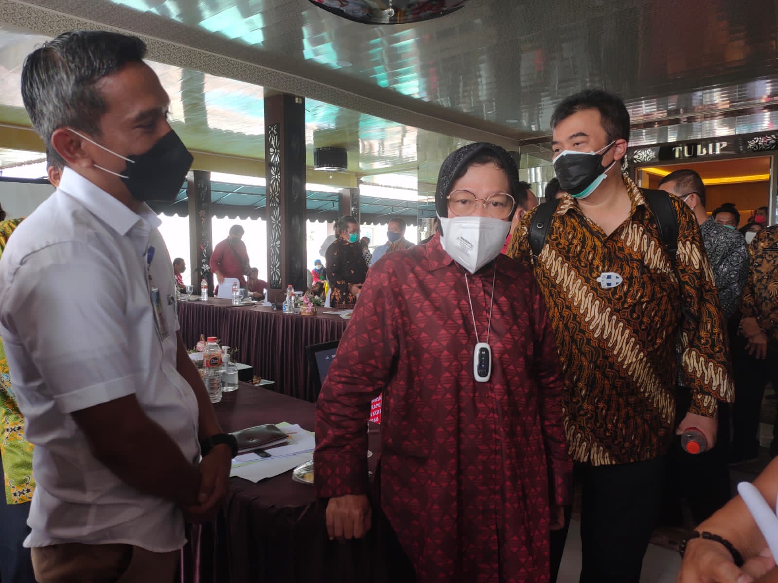Mensos Tri Rismaharini saat berdialog dengan Kadinsos Kapuas Budi Kurniawan.