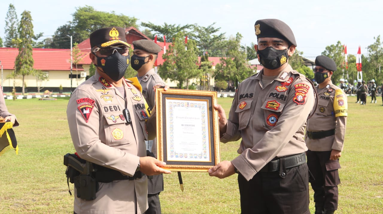 “Penerima penghargaan ini diwakilkan kepada delapan pesronel diantaranya Kasatresnarkoba Polres Lamandau AKP I Made Rudia, S.H. yang berhasil dalam pengungkapan kasus tindak pidana narkotika pada tanggal 17 Januari 2021 dengan tersangka atas nama Hariyanto dengan barang bukti jenis sabu seberat 1,7 Kg,” ujar Eko.