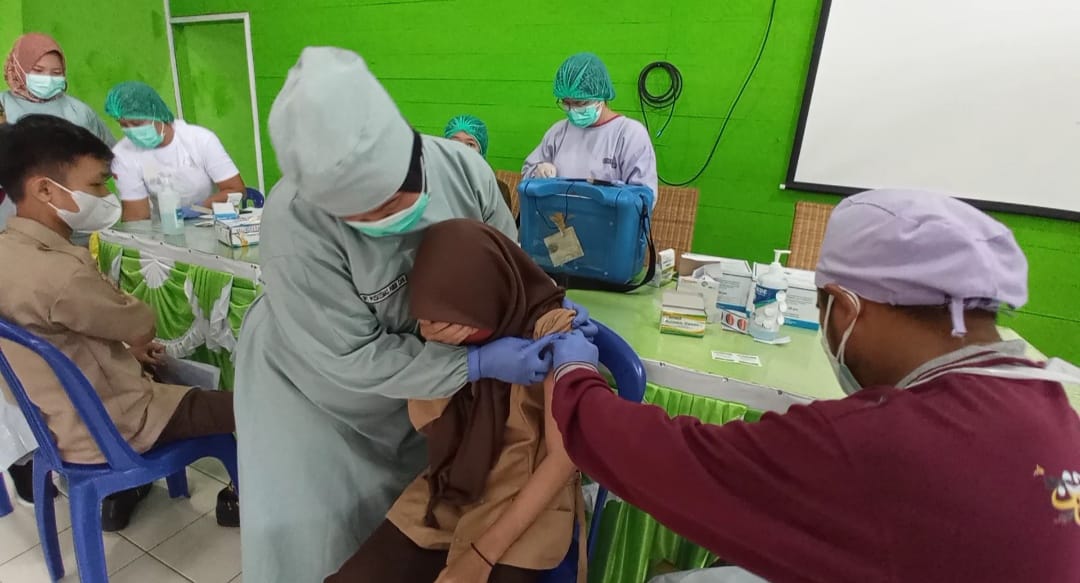 Pelalaksanaan vaksinasi massal yang digelar khusus bagi anak pelajar sekolah SMA, dan SMP sederajat ini diikuti sebanyak 300 siswa.