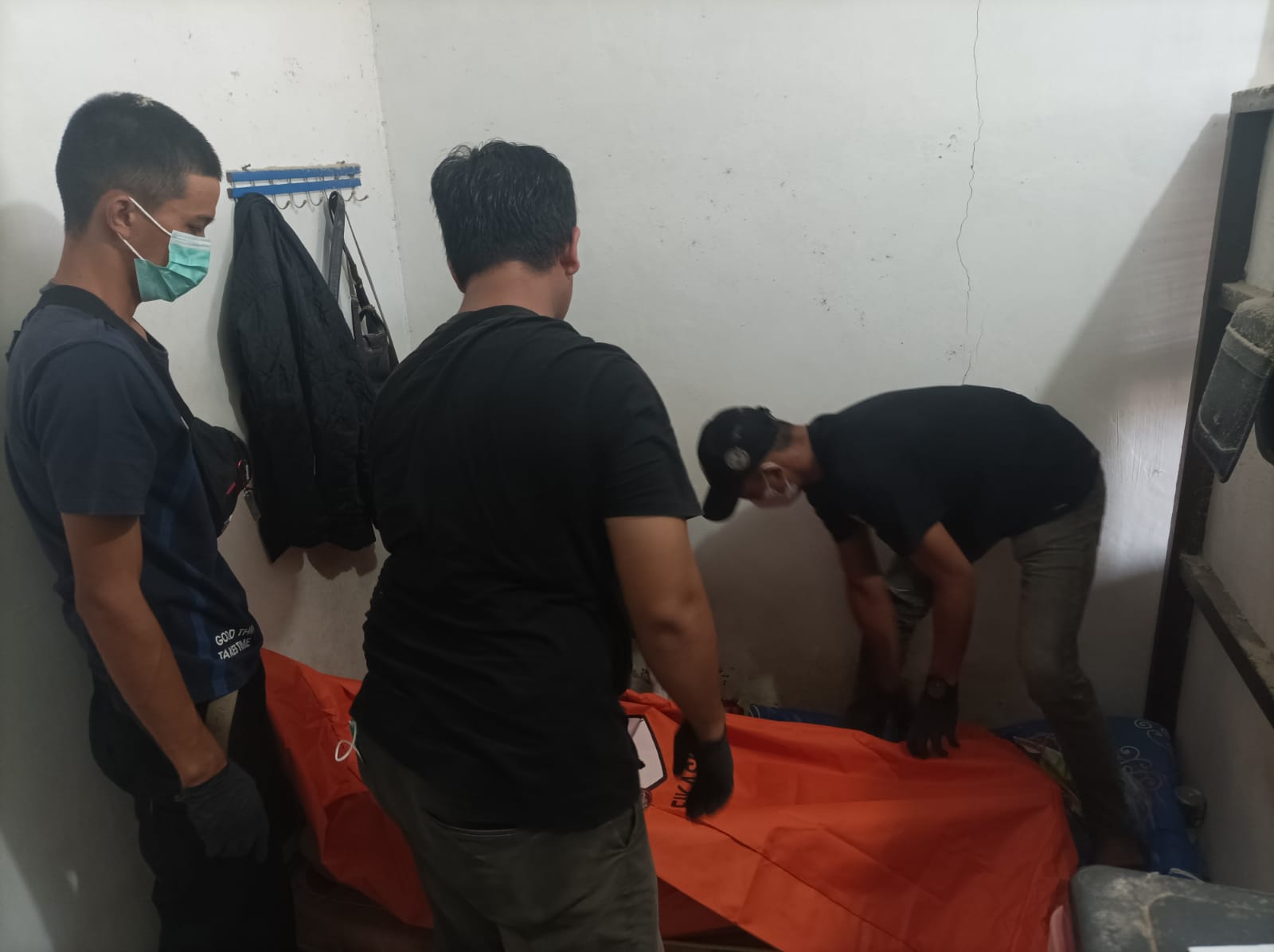 “Begitu pintu didobrak, korban terlihat terbujur kaku tidak bernyawa dengan posisi terduduk diatas kasur,” kata Pemilik Barak Bernama Bengnem Saragi ketika ditemui dilokasi.