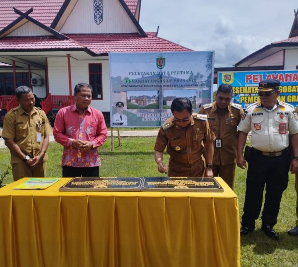 KASONGAN, kaltengtimes.co.id-Bupati Katingan Sakariyas meletakan batu pertama peningkatan dua Pusat Kesehatan Masyarakat di Kabupaten Katingan yakni, Puskesmas Mendawai, Kecamatan Mendawai dan Puskesmas Pegatan II Kecamatan Katingan Kuala, Selasa siang (21/3).