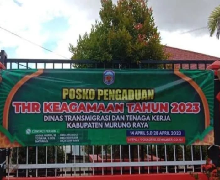 PURUK CAHU, kaltengtimes co id-Pemerintah Kabupaten Murung Raya, Kalimantan Tengah, melalui Dinas Transmigrasi dan Tenga Kerja (Distransnaker) membuka posko pengaduan Tunjangan Hari Raya (THR) Idul Fitri 1444 hijriah bagi karyawan swasta di daerah setempat.