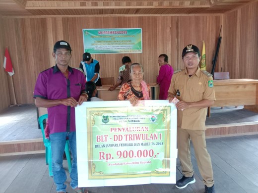 KUALA KAPUAS, kaltengtimes.co.id- Sebanyak 59 orang Keluarga Penerima Manfaat (KPM) Desa Supang Kecamatan Kapuas Hulu terima Bantuan Langsung Tunai (BLT) yang dialokasikan dari Dana Desa (DD) tahun 2023 pada Triwulan pertama dengan nilai Rp.900.000 yaitu Januari-Pebruari dan Maret.