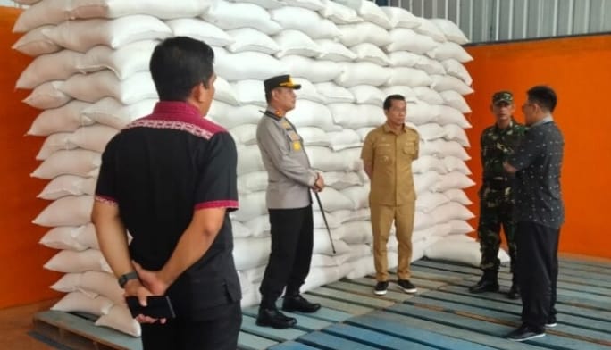Kedatangan Bupati didampingi oleh Kadis Perindagkop Suria Siri, Kapolres Murung Raya AKBP Irwansah, Danramil 1013/07 Puruk Cahu Arah Supriyana serta jajaran lainnya dan disambut oleh Kepala gudang bulog beriwit Andy Susanto.