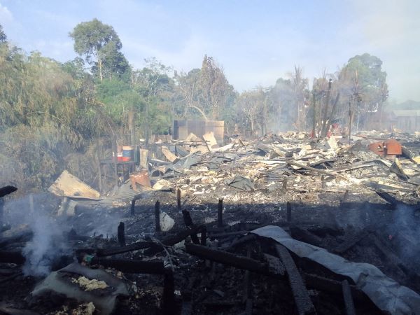 PURUK CAHU, kaltengtimes.co.id-Kebakaran hebat yang meluluhlantahkan 26 unit rumah warga dan empat unit rumah burung walet di RT 01, Desa Tumbang Bondang, Kecamatan Laung Tuhup, Kabupaten Murung Raya (Mura), sementara diduga akibat terjadinya korsleting listrik dari kabel ACCU (AKI) panel tenaga surya milik salah satu warga di lokasi kejadian.