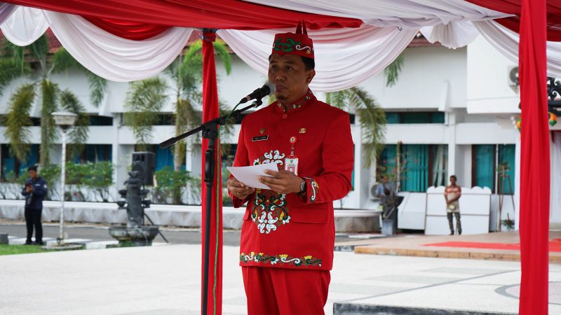Asisten Pemerintahan dan Kesra (asisten I) Sekretariat Daerah Kabupaten Barsel Yoga Prasetianto Utomo selaku Inspektur upacara membacakan sambutan Menteri Komunikasi dan Informatika RI. Dalam sambutannya ia mengatakan bahwa di masa ini, di saat kemerdekaan telah diraih, barisan perjuangan harus tetap rapat, erat, dan terus maju bergerak mengobarkan api “Semangat untuk Bangkit!” demi mewujudkan Indonesia Emas 2045.