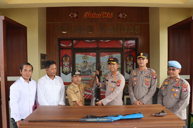 Kapolres Kapuas AKBP Kurniawan Hartono, S.I.K. mengucapkan terimakasih kepada warga yang dengan kesadaran sendiri telah menyerahkan Senjata Api Rakitan jenis Revolver dan Laras Panjang ke Aparat Kepolisian.