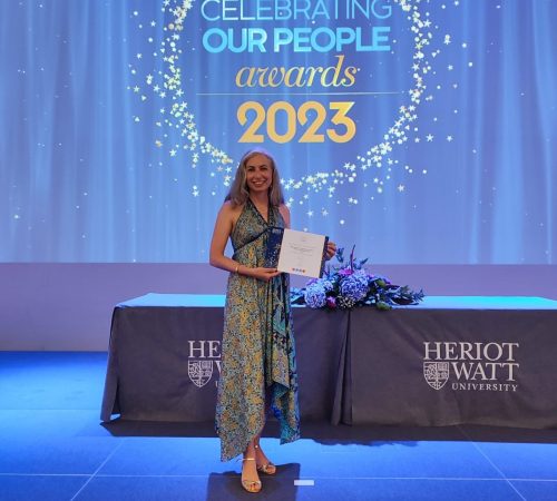 Perwakilan tim proyek kolaborasi dari Heriot-Watt University Dr Claudia Aravena saat menerima penghargaan Pioneering Education Award for Global Programme. (Photo/ist)