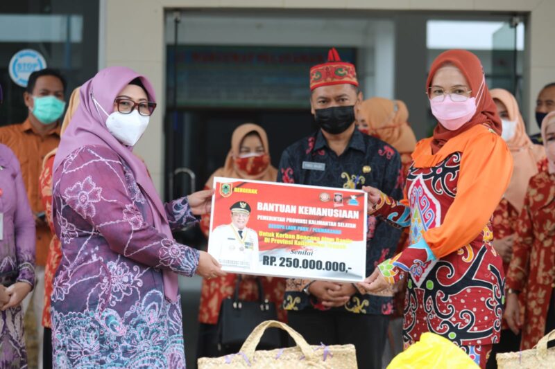 PALANGKA RAYA. Kaltengtimes.co.id – Untuk turut membantu meringankan beban masyarakat terdampak banjir di wilayah Kalimantan Tengah, Pemerintah Provinsi Kalimantan Selatan menyerahkan bantuan senilai Rp 250.000.000, dalam bentuk paket sembako dan bantuan lainnya. Penyerahan bantuan 1.000 paket sembako secara simbolis dilakukan oleh Ketua TP-PKK Prov.Kalsel Hj. Raudatul Jannah kepada Hj.Nunu Andriany Edy Pratowo mewakili Ketua TP-PKK Prov.Kalteng, Ivo Sugianto Sabran, di Kantor Dinas Sosial Prov.Kalteng, Jum’at (24/9).