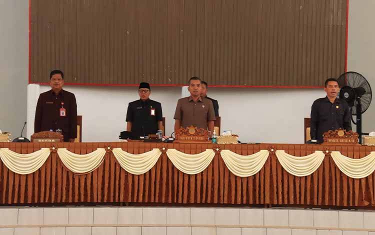 Rapat yang digelar secara tatap muka di Gedung Paripurna DPRD Seruyan ini dipimpin oleh Wakil Ketua I DPRD Seruyan, H Bambang Yantoko, didampingi Wakil Ketua II Muhamad Aswin dan dihadiri Sekretaris Daerah (Sekda) Seruyan Djainuddin Noor.