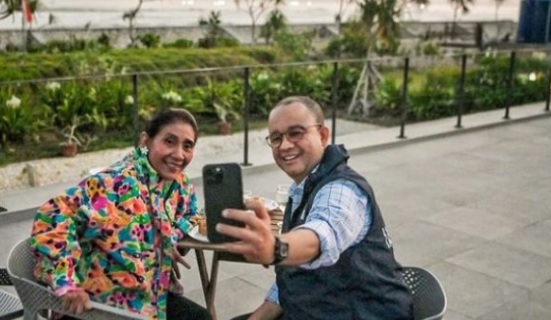 Drone emprit juga mengulas isu impresi di media sosial tentang hubungan Susi Pudjiastuti dengan Ganjar Pranowo. Keduanya memang belum bertemu sebagaimana Anies dan Prabowo yang sudah mengunjungi Pangandaran.