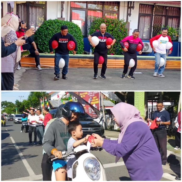 Usai senam bersama dilanjutkan dengan berbagi-bagi Bendera Merah putih dengan berbagai ukuran kepada para Abang becak, pengendara roda dua dan roda empat yang melintas di jalan Tambun Bungai tepatnya di depan Dinas Pendidikan Kapuas.