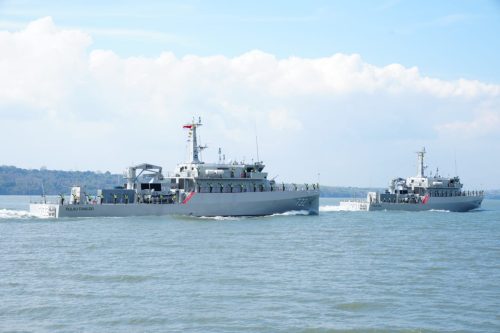 Sailing Pass KRI Pulau Fani-731, KRI Pulau Fanildo-732, diikuti oleh KRI Kapak-625, KRI Panah-626, KRI Kerambit-627, KRI Sampari-628, KRI Tombak-629, KRI Halasan-630, KRI Golok-688, Kal Warakas, Kal Katon dan Pasukan Khusus (Kopaska, Penyelam dan Kapal Selam). (red)