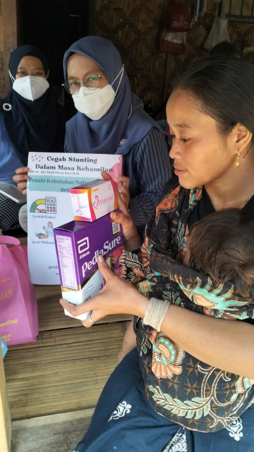 Berdasarkan data di lapangan, lebih kurang 30-50% balita di Badui mengalami stunting dengan berbagai masalah kesehatan. “Penyebab kondisi ini antara lain akibat kurangnya asupan makronutrien dan mikronutrien sejak anak dalam kandungan sampai usia 2 tahun. Pola pengasuhan sejak 1000 hari pertama kehidupan yang merupakan periode emas perkembangan organ-organ vital pada anak merupakan kunci penanganan masalah stunting. Oleh karena itu perlu dilakukan pemberian edukasi khusus pada ibu hamil yang memiliki risiko tinggi (bumil resti) untuk mencegah stunting”, ujar apt. Santi.
