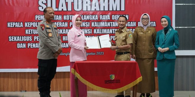Palangka Raya, kaltengtimes.co.id – Pemerintah Kota Palangka Raya telah menyerahkan hibah barang milik Pemerintah Daerah berupa tanah kepada Polda Kalteng yang dilaksanakan di Rumah Jabatan Wali Kota Palangka Raya, Senin (14/8/2023).
