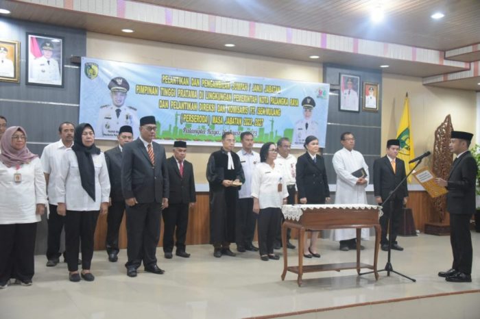 Palangka Raya, kaltengtimes.co.id — Wali Kota Palangka Raya, Fairid Naparin melantik dan mengambil sumpah janji delapan pejabat eselon 2 atau pejabat pimpinan tinggi pratama lingkup Pemko setempat di rumah jabatan Wali Kota Palangka Raya, Rabu (16/8/2023).