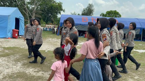 Tawa bahagia para anak-anak kian terpancar, pada saat para polwan Polda Kalteng membawakan bingkisan berupa makanan ringan dan susu untuk menemani para anak-anak bermain. “Alhamdulillah anak-anak yang awalnya takut akibat peristiwa beberapa waktu lalu, kini mulai kembali ceria,” ucapnya.