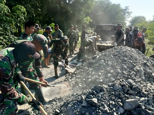 Pemandangan lain yang terlihat, tampak jelast kebersamaan antara warga dan TNI saat pengerjaan Peningkatan jalan tersebut, TNI dan warga setempat berbaur layaknya sebuah keakraban tanpa pembatas dan tanpa jarak.