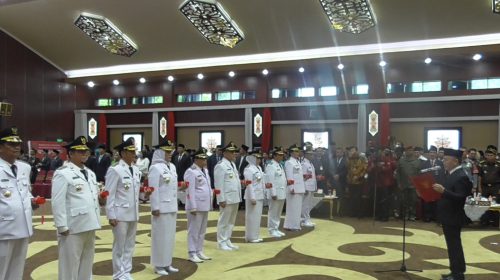 PALANGKA RAYA, Kaltengtimes.co.id – Sebanyak 9 Penjabat Bupati di Kalimantan Tengah dan Penjabat Wali Kota Palangka Raya secara resmi dilantik Gubenrur Kalimantan Tengah H. Sugianto Sabran atas nama Presiden RI Joko Widodo. Pelantikan dan pengambilan sumpah/ janji jabatan dipusatkan di Aula Jayang Tingang, Kantor Gubernur Kalteng, Senin (25/9/2023).