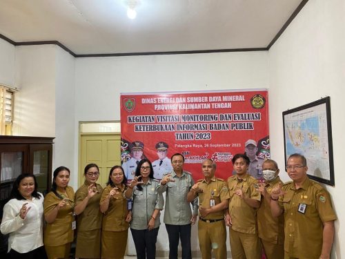 PALANGKA RAYA. Kaltengtimes.co.id –Dalam rangka Monitoring dan Evaluasi Keterbukaan Informasi Badan Publik Provinsi Kalimantan Tengah Tahun 2023, Dinas Energi dan Sumber Daya Mineral (DESDM) Provinsi Kalimantan Tengah menerima kunjungan Tim Visitasi Monitoring dan Evaluasi Keterbukaan Informasi Badan Publik Komisi Infromasi Provinsi Kalimantan Tengah, Selasa (26/9/23) di Ruang Kepala Bidang Geologi, Kantor DESM Prov. Kalteng.