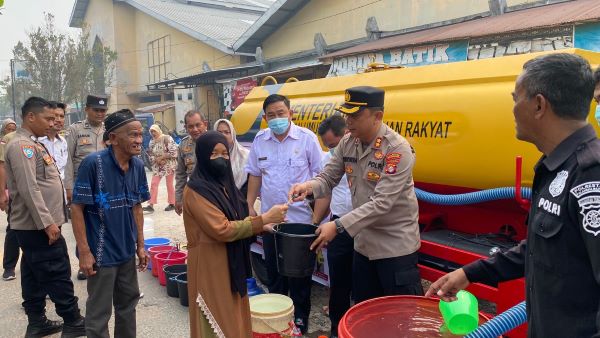 Sebanyak 4.000 liter air bersih pun disalurkan oleh Polresta Palangka Raya melalui satu unit truk tangki dan diterima oleh sekitar 40 KK yang berdomisili pada komplek pemukiman di kawasan Jalan Mendawai.