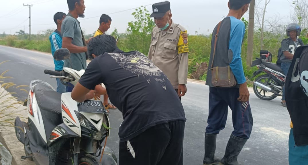 “Sepeda motor diketahui bermerek Yamaha Mio bernomor polisi KH 5036 TS, yang ditemukan oleh warga setempat dengan kondisi tercebur ke parit dan telah ditinggalkan oleh pengendaranya,” ungkapnya