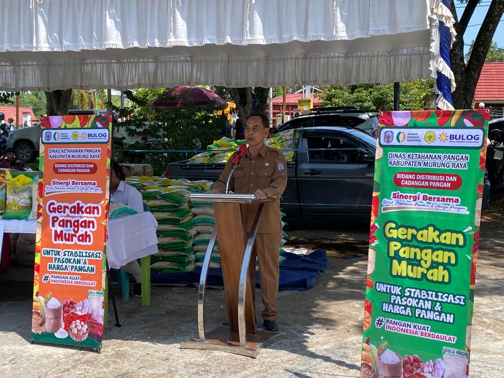PURUK CAHU, kaltengtimes.co.id–Plh Sekda Kab. Mura Serampang mewakili Pj Bupati Mura yang berhalangan hadir memberikan apresiasi kepada Dinas Ketahanan Pangan Kabupaten Murung Raya, Perum Bulog, para agen atau distributor pangan, serta pihak-pihak lainnya yang terlibat dalam menyukseskan acara ini.