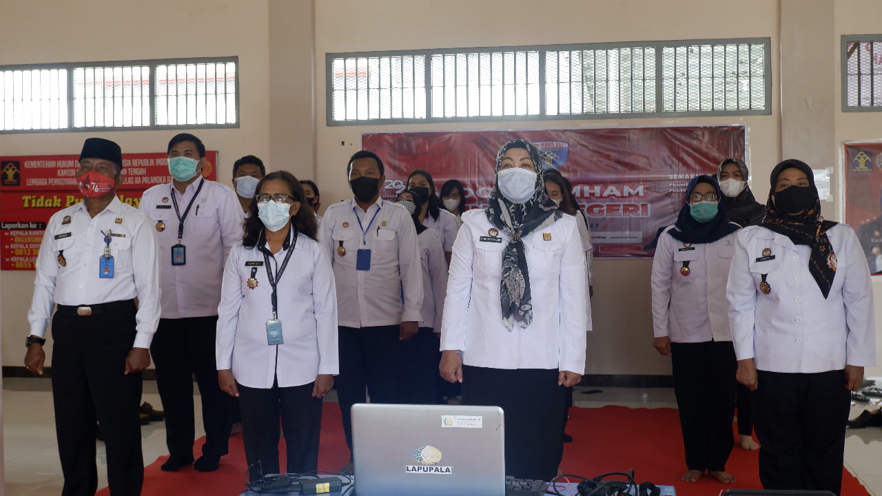 Palangka Raya, kaltengtimes.co.id-Kepala Lembaga Pemasyarakatan Perempuan Kelas IIA Palangka Raya (Lapupala) beserta Jajaran mengikuti upacara peringatan Hari Kesaktian Pancasila, Doa Kumham untuk Negeri dan Pembukaan Peringatan Hari Dharma Karya Dhika (HDKD) secara virtual melalui aplikasi zoom meeting. Kegiatan upacara hari kesaktian Pancasila diikuti oleh Kepala Lapupala dan Jajarannya di Aula Lapupala pada pukul 08:00 WIB sementara Doa Kumham untuk Negeri dan Pembukaan Peringatan HDKD Tahun 2021 diikuti oleh semua pegawai Lapupala di ruang besuk pada pukul 09:00 WIB. Jumat (01/10/2021)