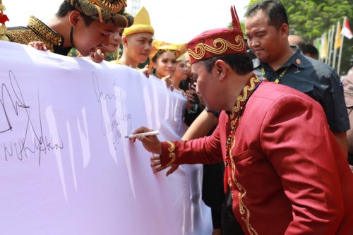 Pada kesempatan ini pula sebagai komitmen bersama, dilakukan penandatanganan Ikrar Bersama Anak Bangsa (IBAB) pada hamparan kain putih sepanjang 95 meter oleh Wagub Kalteng dan seluruh elemen yang hadir pada ucapara tersebut.