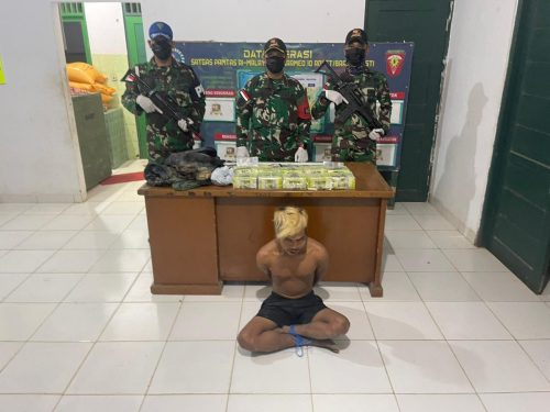 Personel Satgas yang sebelumnya sudah mendapatkan informasi dari masyarakat bahwa akan ada upaya penyelundupan sabu segera menindaklanjuti dengan menggelar Patroli . “Setelah selama kurang lebih dua hari melaksanakan Patroli, pada hari ini,tadi sekitar pukul 04.15 WIB, Tim Patroli berhasil mengamankan pelaku yang membawa ransel,yang saat diperiksa berisi 10 paket kristal putih dalam kemasan Teh Guanyinwang diduga sabu seberat kurang lebih 10 Kilogram,” ungkap Danrem.