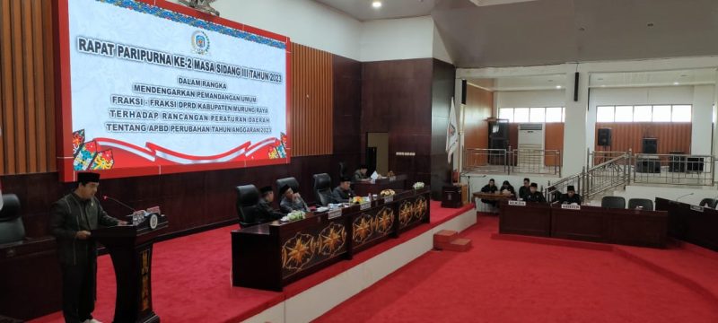 Ada dua agenda dalam rapat Paripurna yang dihadiri Bupati Murung Raya Perdie M Yoseph dan Wabup Rejekinoor, Fraksi DPRD Murung Raya, Forkopimda Murung Raya, Kajari Murung Raya, Kapolres Murung Raya, Pabung 1013 Muara Teweh, Asisten Sekda Murung Raya dan tamu undangan lainnya.