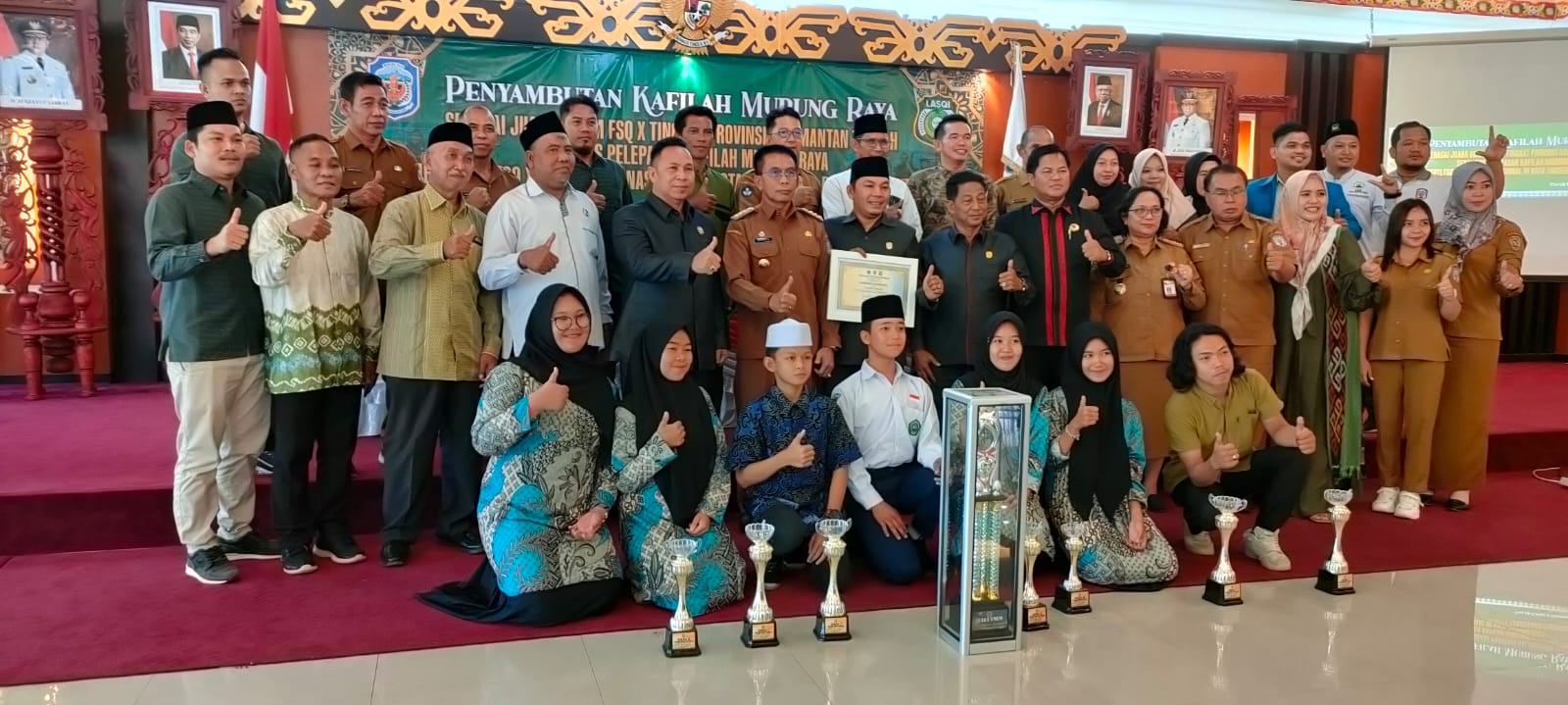 PURUK CAHU, kaltengtimes.co.id—Unsur pimpinan DPRD Murung Raya menyambut kedatangan Kafilag FSQ Murung Raya yang meraih juara umum FSQ X tingkat provinsi Kalimantan Tengah. Penyambutan tersebut sekaligus melepas kafilah Murung Raya untuk mengikuti FSQ XXVII tingkat Nasional di Tangerang, Banten.