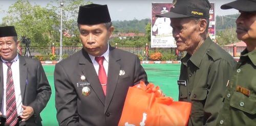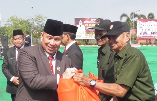 Ketua DPRD Murung Raya Doni turut memberikan bingkisan kepada purnawirawan TNI-Polri. (Photo/rosa)