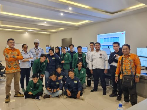 Dua rombongan terdiri dari mahasiswa dan dosen mengunjungi salah satu industri listrik tenaga uap yang berlokasi di mulut tambang tersebut, Selasa (7/11/23). Mereka disambut manajer serta teknisi yang membidangi.