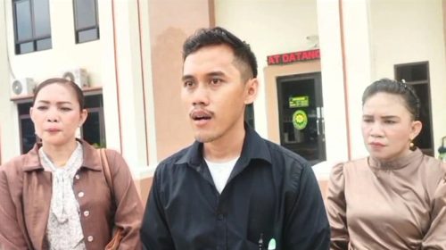 Pengacara keluarga korban Lodoy Tamus, Kariswan Pratama Jaya, S.H. (tengah) saat di dampingi anak korban. (Photo/kin)