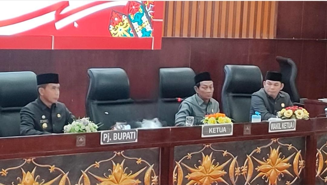 Rapat tersebut dipimpin oleh Wakil Ketua I DPRD Murung Raya Likon didampinggi Wakil Ketua II DPRD Murung Raya Rahmanto dan dihadiri oleh unsur Forkopimda dan tamu undangan lainnya.
