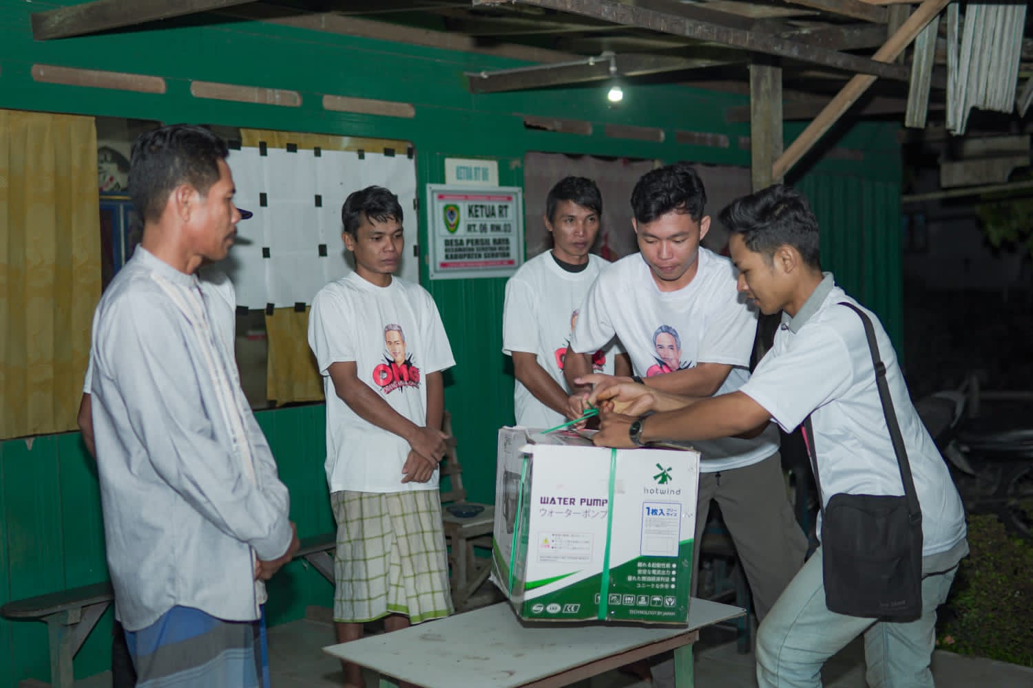 Loyalis Ganjar Pranowo dan Mahfud MD ini menyerahkan stimulus lampu solar cell untuk digunakan sebagai penerangan jalan umum (pju) di Dusun Pematang Sarai, Desa Pematang Panjang, Kecamatan Seruyan Hilir Timur, Kabupaten Seruyan, Kalimantan Tengah, Kamis (23/11) malam.