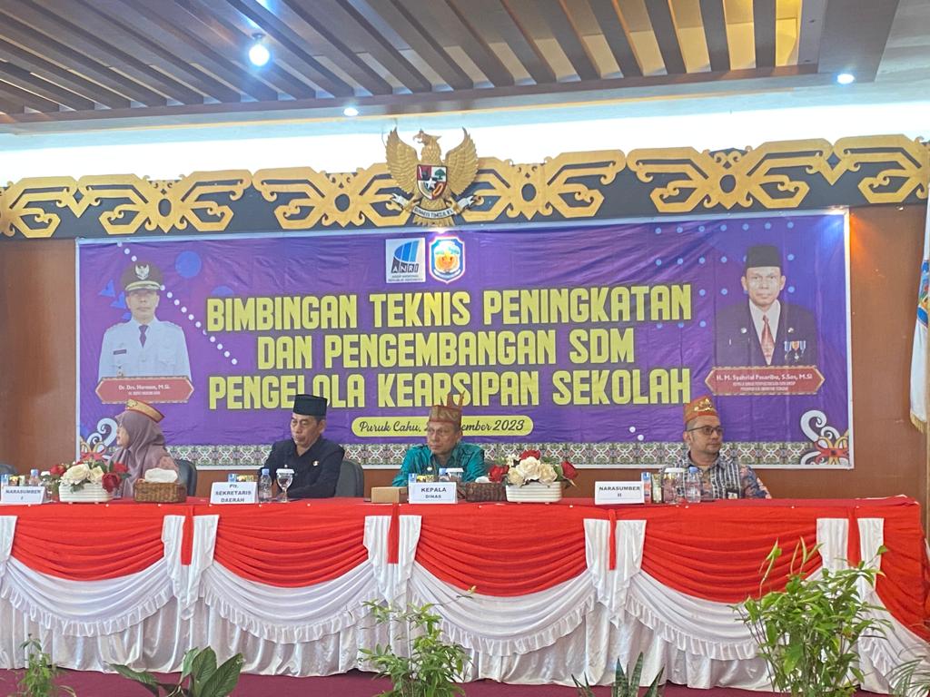 PURUK CAHU, kaltengtimes.co.id–Guna meningkatkan pemahaman tentang pengelolaan arsip berupa catatan rekaman kegiatan atau sumber informasi yang memiliki nilai guna tinggi, Dinas Perpustakaan dan Kearsipan (DISPURSIP) Kabupaten Murung Raya (Mura) gelar Bimbingan Teknis Teknis Pengelolaan Arsip Sekolah Kabupaten Murung Raya Tahun 2023 di Aula Ondhui Tingang, Kantor Bupati Murung Raya pada Kamis (23/11/2023)