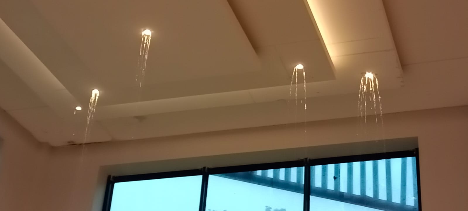 Diketahui, ada terdapat bocor yang cukup besar pada tiga titik di sebelah kiri Aula utama (ballroom). Air yang mengucur dari bagian atas itu persis di beberapa lubang tempat lampu, sehingga dikhawatirkan bisa mengakibatkan korsleting listrik.