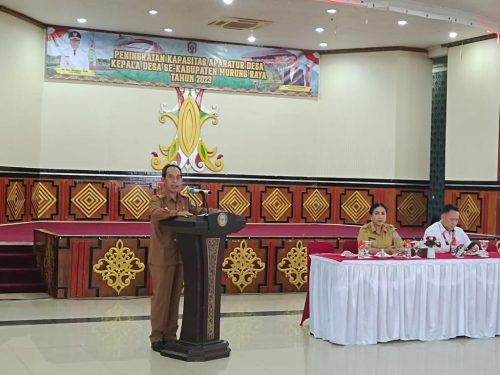 PURUK CAHU. Tambunbungai.com — Pj. Bupati Murung Raya Hermon yang diwakili oleh Plt. Sekda Murung Raya Serampang menghadiri dan sekaligus membuka kegiatan Kegiatan Peningkatan Kapasitas Aparatur Desa yang dilaksanakan di Gedung Pertemuan Umum (GPU) Tira Tangka Balang, Senin (27/11/23).