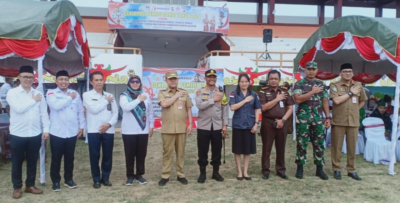 BUNTOK, kaltengtimes.co.id – Jajaran Polres Barito Selatan bersama KPU dan Bawaslu melaksanakan kegiatan Deklarasi Damai menjelang Pemilihan Legislatif (Pileg) dan Pemilihan Umum (Pemilu) 2024 di Stadion Batuah Buntok, Senin (4/9/2023).