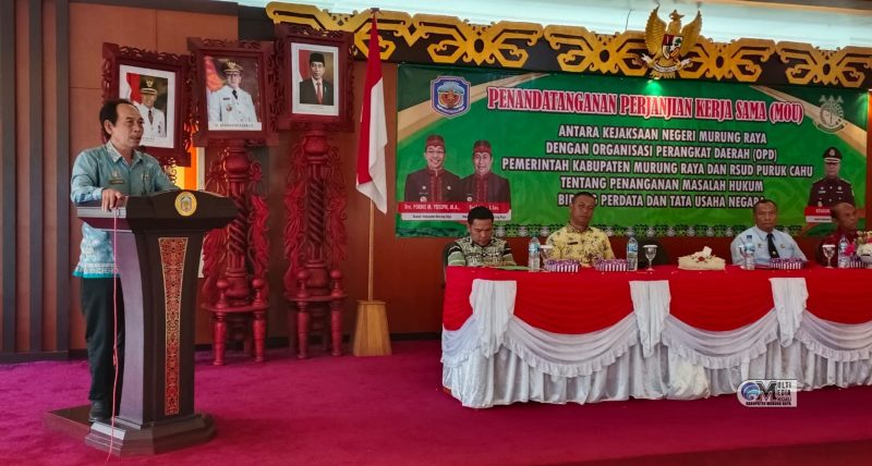 MURUNG RAYA, kaltengtimes.co.id – Asisten Pemerintahan, Hukum dan Politik Setda Kab.Murung Raya, Serampang menuturkan, penandatanganan kerjasama antara Pemerintah Kabupaten Murung Raya dan Kejaksaan Negeri Murung Raya merupakan sarana untuk menjaga dan mempererat hubungan antara Pemkab Murung Raya dengan Kejaksaan Negeri Murung Raya, serta bermanfaat dalam mewujudkan kesamaan pandang terhadap upaya dan langkah yang diperlukan dalam penyelesaian masalah hukum di Bidang Perdata dan Tata Usaha Negara.