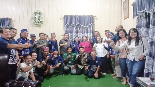 Ketua Kerukunan Warga Dayak Dusun, Maanyan dan Lawangan (Dusmala) Mururung Raya (Mura), Enjar Emes bersama pengurus Warga Dusmala, Tokoh Dusmala di Murung Raya usai mengukuti karnaval Dusmala HUT Ke 21 Mura sangat menyambut baik atas kedatangan Bupati Bartim Ampera AY Mebas, beserta rombongan di bumi Tana Malai Tolong Lingu ” TIra Tangka Balang ” di kediaman Ketua Dusmala Mura pada, Senin (31/07/2023).